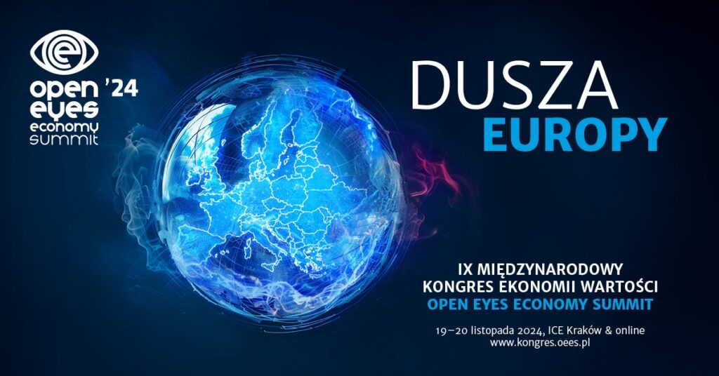 Pod hasłem „Dusza Europy” 19 i 20 listopada 2024 r. w Krakowie i online odbędzie się IX edycja jedynego w Polsce Kongresu Ekonomii Wartości Open Eyes Economy Summit. Zaproszeni prelegenci i prelegentki będą rozmawiać o przyszłości Europy oraz innych bieżących wyzwaniach, przed którymi stoi współczesny świat. Patronat honorowy nad IX edycją kongresu objęły instytucje, takie jak: Ministerstwo Cyfryzacji, Ministerstwo Kultury i Dziedzictwa Narodowego, Ministerstwo Przemysłu oraz Europejski Komitet Ekonomiczno-Społeczny.